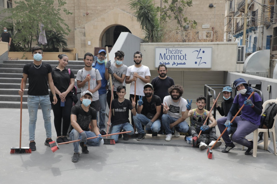 وقال مؤسس "المسرح الوطني اللبناني" الممثل والمخرج قاسم إسطنبولي: "علينا جميعا التضامن في ظل هذه الأزمات الكبيرة، ووجودنا مرتبط ببعضنا البعض، ومشهد التضامن نراه بمشاركة الشباب اللبناني والفلسطيني والسوري والعمال والعاملات العاملين في لبنان بأعمال التنظيف والترميم".