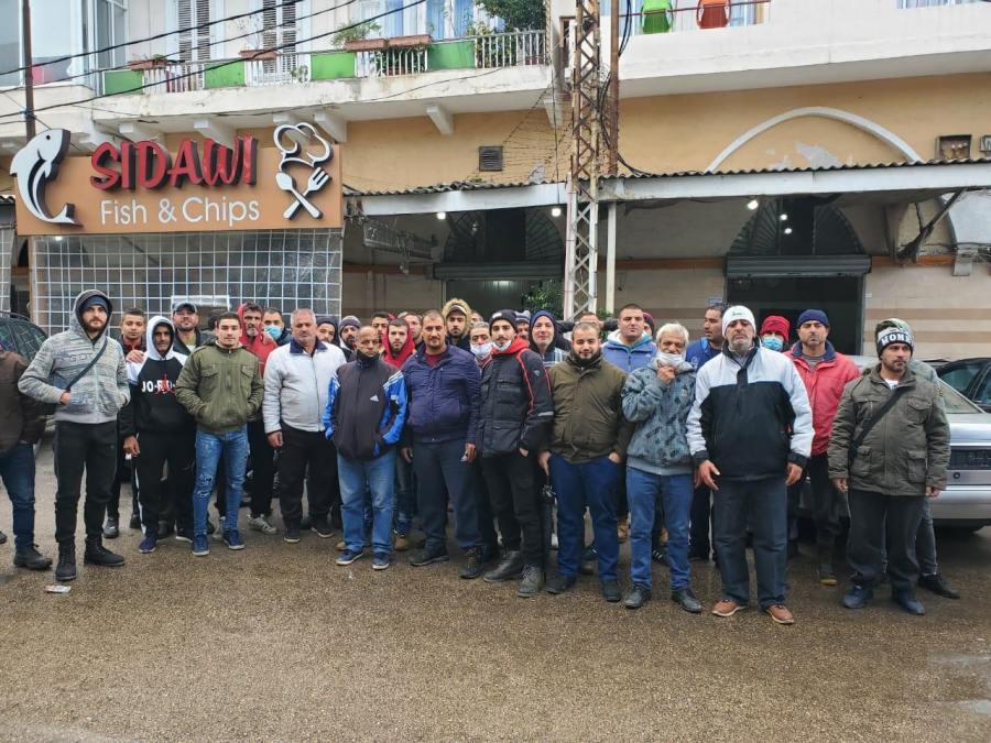وقفة تحذيرية لصيادي الاسماك في الميناء مطالبين بفتح محالهم على مدار الساعة