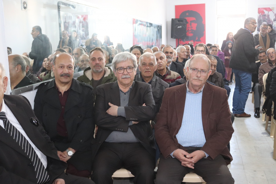 ثم تحدث الأمين العام للحزب الشيوعي اللبناني الرفيق حنا غريب ، مرحباً بالحضور، وموجّها التحية إلى الشعب الفلسطيني ومقاومته الأسطورية ضد العدو الصهيوني المدعوم من الولايات المتحدة الأميركية والرجعية العربية .