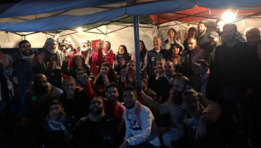 مع بداية ثورة 17 تشرين، برزت في "ساحة النور" مجموعة من نحو شباب شيوعيين عشر، ثمّ تجاوز عددهم الـ 50 شابًا منظمًا، إلى جانب العشرات الذين يدورون في فلكهم. وقبل نقلهم خيمتهم إلى هامش الساحة، بسبب سوء الأحوال الجوية، كانوا نصبوا الخيمة وسطها مقابل اسم الجلالة "الله"، وهم ما زالوا يتناوبون على المبيت في الخيمة ليلًا، لقناعتهم بأنّ لا خروج من الساحة بعد اليوم.